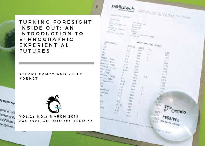 In terms of our primary lens of futures research, we have noted how EXF brings ethnographic and experiential traditions together, spurred in part by a recently articulated methodological need in foresight to enable design-driven “circumstances or situations in which the collective intelligence and imagination of a community can come forth” (Candy & Dunagan, 2017, p. 150).