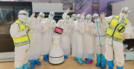 In keepingwith the saviour theme, many media photographs from Wuhan have depicted healthcare workers posing with CloudMinds medicorobots which are given center stage. (Fig. 2) These medicorobots have in a relatively short time achieved international stardom, pathing the way for the global acceleration of robotics in the post COVID-19 world.